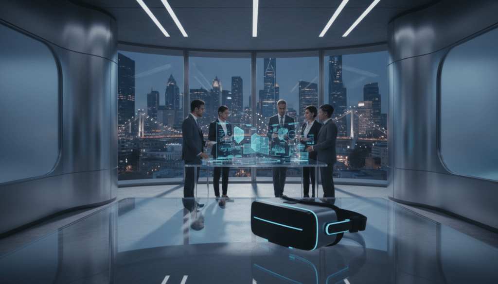 Virtuelle Meetingräume ermöglichen es Teams, über geografische Distanzen hinweg in einer gemeinsamen virtuellen Umgebung zusammenzuarbeiten. Avatare, gemeinsame Werkzeuge und die Möglichkeit, 3D-Objekte zu teilen, verbessern die Effizienz und das Gefühl der Präsenz. Meta Quest Pro und Pico 4 Enterprise sind hier besonders stark positioniert.