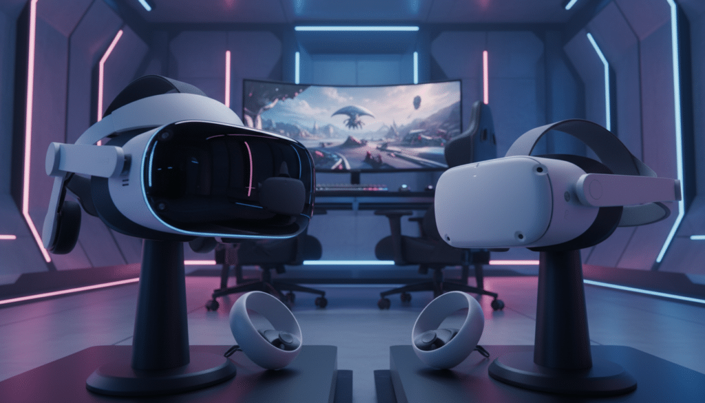 Sony mit der PlayStation VR2 und Meta mit der Quest-Reihe (aktuell Quest 3 und Quest Pro) repräsentieren zwei unterschiedliche Philosophien im VR-Markt. Die PS VR2 ist tief in das Ökosystem der PlayStation 5 integriert und bietet eine auf Gaming zugeschnittene Erfahrung mit hochmoderner Hardware. Meta hingegen setzt auf ein eigenständiges Ökosystem, das sowohl Standalone-VR als auch PC-VR-Streaming ermöglicht und eine breitere Anwendungsbasis anstrebt. Deine Entscheidung sollte also von deinen Prioritäten bei der VR-Nutzung bestimmt werden: Konsolenexklusivität und Immersion versus Flexibilität und Openness.
